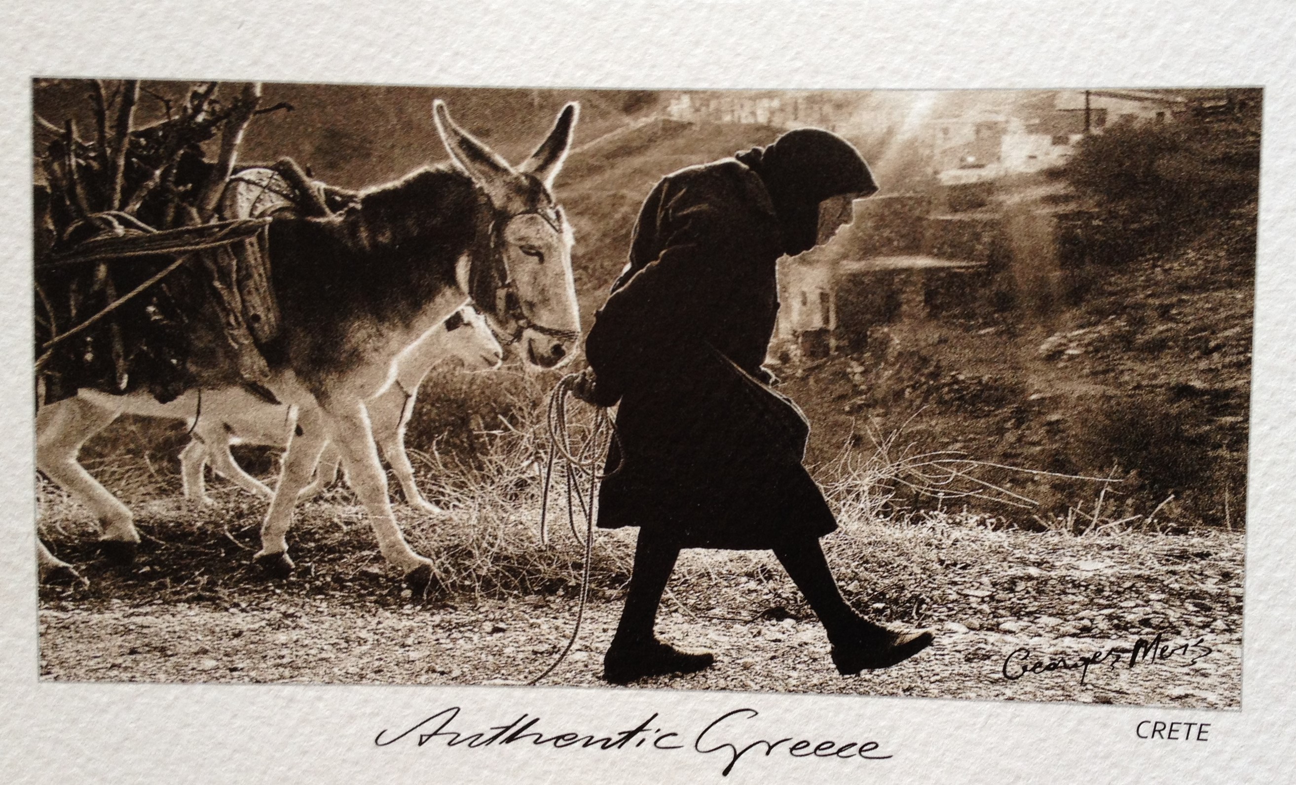 This is a postcard I found in Crete – one of my favourite places in the world. I once wanted to buy an old dilapidated taverna in a little village on the coast, empty of trade and teaming with cats… Had I done so, I could have been her!