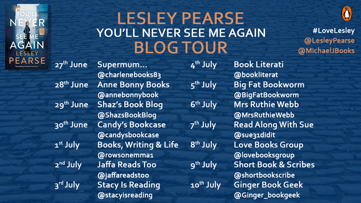 Lesley Pearse writes with such care and heart that her stories stay with you. I highly recommend you read You’ll Never See Me Again, I guarantee you will be thoroughly satisfied and like me you will be shouting for more as you close the last page.
