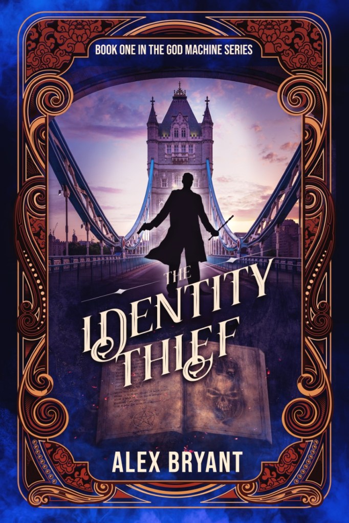 The Identity Thief, by Alex Bryant, is book one in the God Machine Series. (“Does it count as a series if it’s only two novels so far? Well, one novel and one novella? I’m going to say yes. Yes, it does.”- Alex Bryant) The cover is perfect. Shadowy person. London bridge. Scrolled font and border. Yup. I was in. Back cover—intriguing. First page? BAM. Hook, line, and sinker.