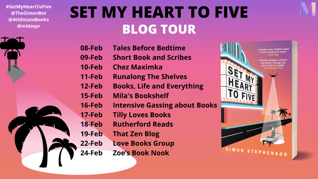 Set in a 2054 where humans have locked themselves out of the internet and Elon Musk has incinerated the moon, Set My Heart To Five is the hilarious yet profoundly moving story of one android’s emotional awakening.