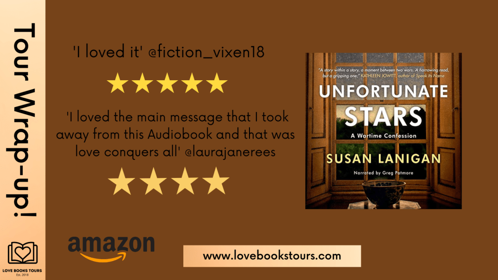 The virtual audiobook tour wrap-up for Unfortunate Stars: A Wartime Confession by Susan Lanigan @susanl_author @GregPatmore @lovebookstours #VirtualBookTour #Wrapup #BookTwitter #Bookreviews #Booktour #Bookbloggers #Bookstagrammers