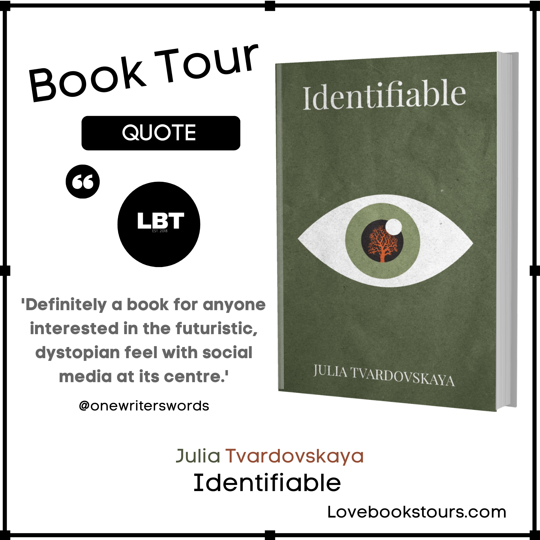 Today we’re wrapping up the book tour for Identifiable by Julia Tvardovskaya. We’ve been lucky enough to have featured some fantastic reviews from amazing readers, and we thank them for their incredible insight.
