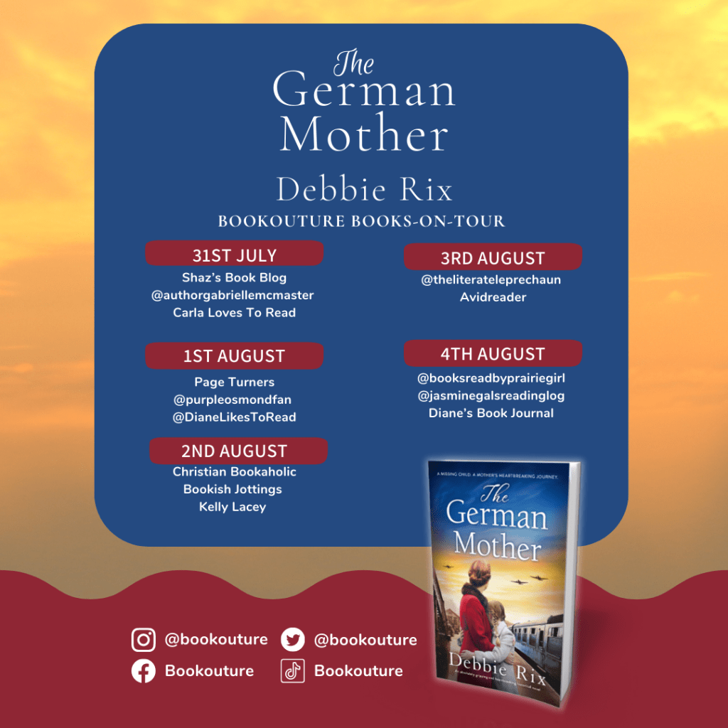 Debbie Rix’s novel, The German Mother, tells the heart-wrenching story of Minki Sommer and her struggle to find her daughter, Clara, during World War II. From the first page, readers are drawn into Minki’s world and the devastating circumstances that she faces.