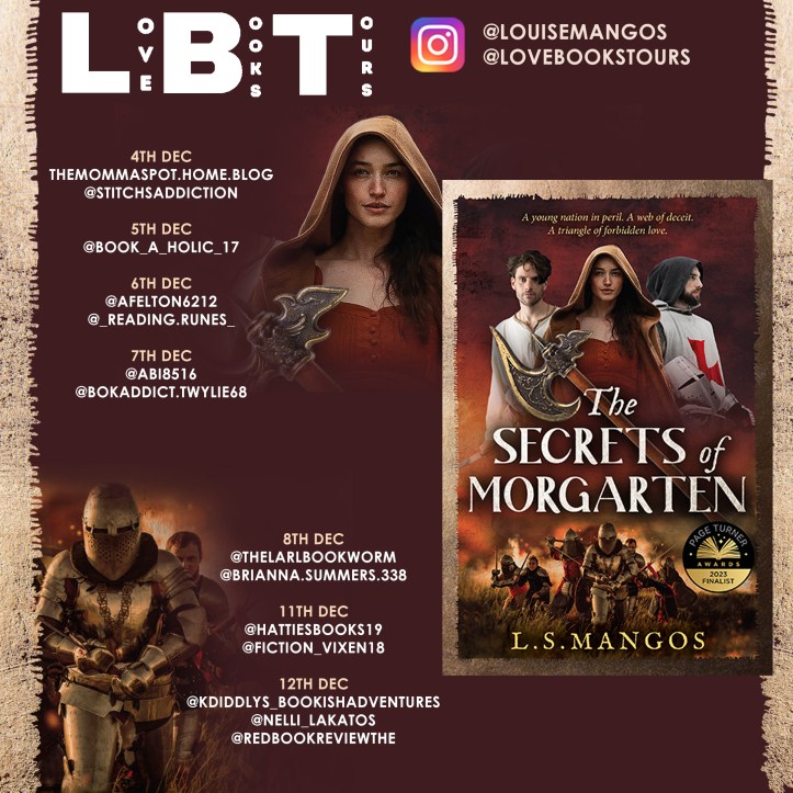 The year is 1315. The fledgling nation of Switzerland – the Confederation Helvetica – is under threat from the Habsburgs. In France, the Knights Templar have been disbanded and declared heretics by the king. Magda, a weaver living near the Alpine village of Morgarten, befriends Walter, a messenger and tracker who is the son of the legendary Wilhelm Tell. Walter and Magda’s budding romance is threatened by the arrival of Sébastien, a fugitive from France. What secrets is this foreigner hiding? Can Walter solve the mystery of a murder and a stolen religious artefact before a mighty battle with the Habsburgs ensues? And who will be the victors in their turbulent triangle of love?