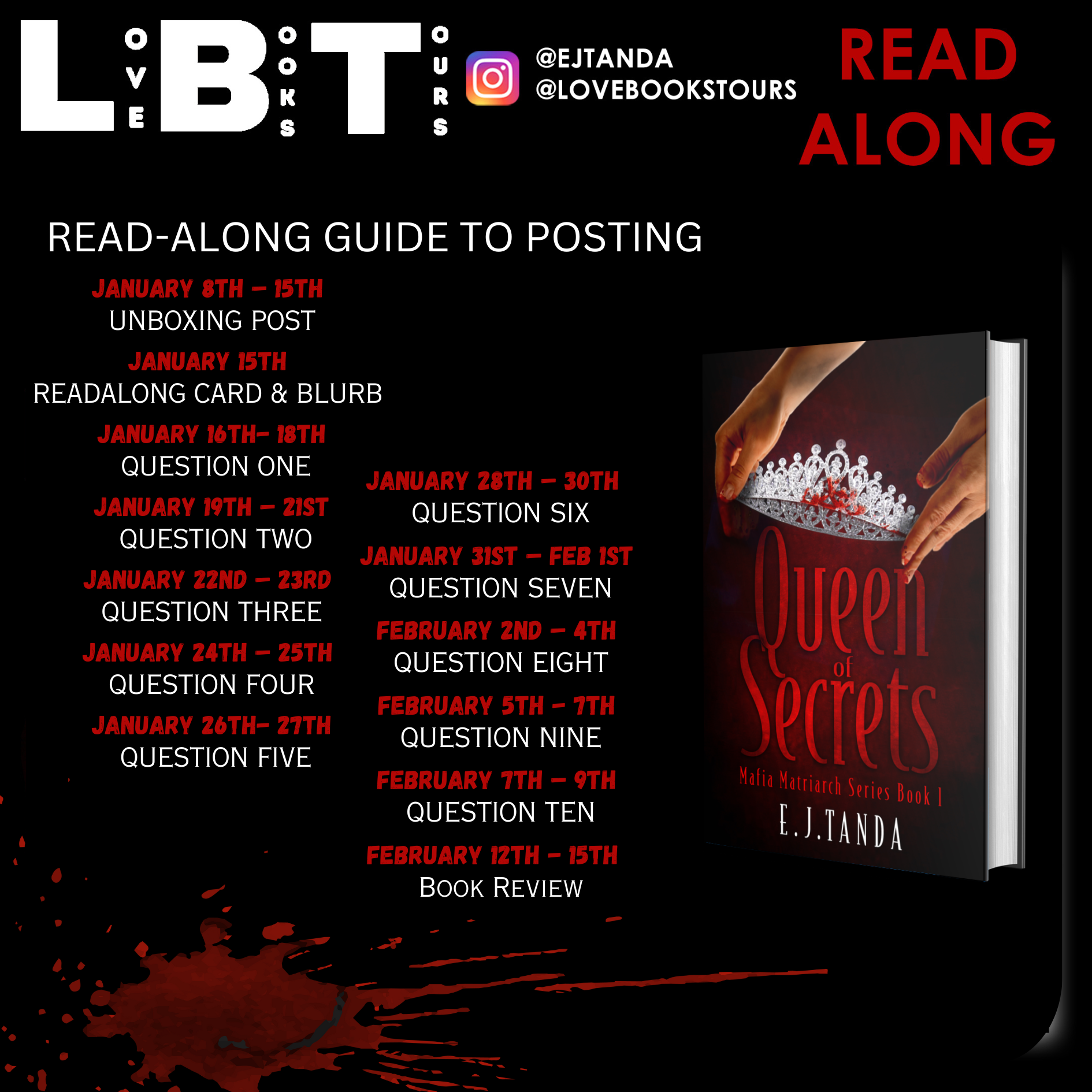 Greetings, fellow book enthusiasts! It’s time to don your literary capes and join hands as we prepare to immerse ourselves in the captivating world of Mafia Romance with the upcoming read-along for “Queen of Secrets” by E.J. Tanda, the first instalment in the thrilling Mafia Matriarch series. So mark your calendars, set your alarms, and get ready to delve into the dusty summer orchards of 1939 San Jose, California, where the secrets of the Giordano family are about to unfold.