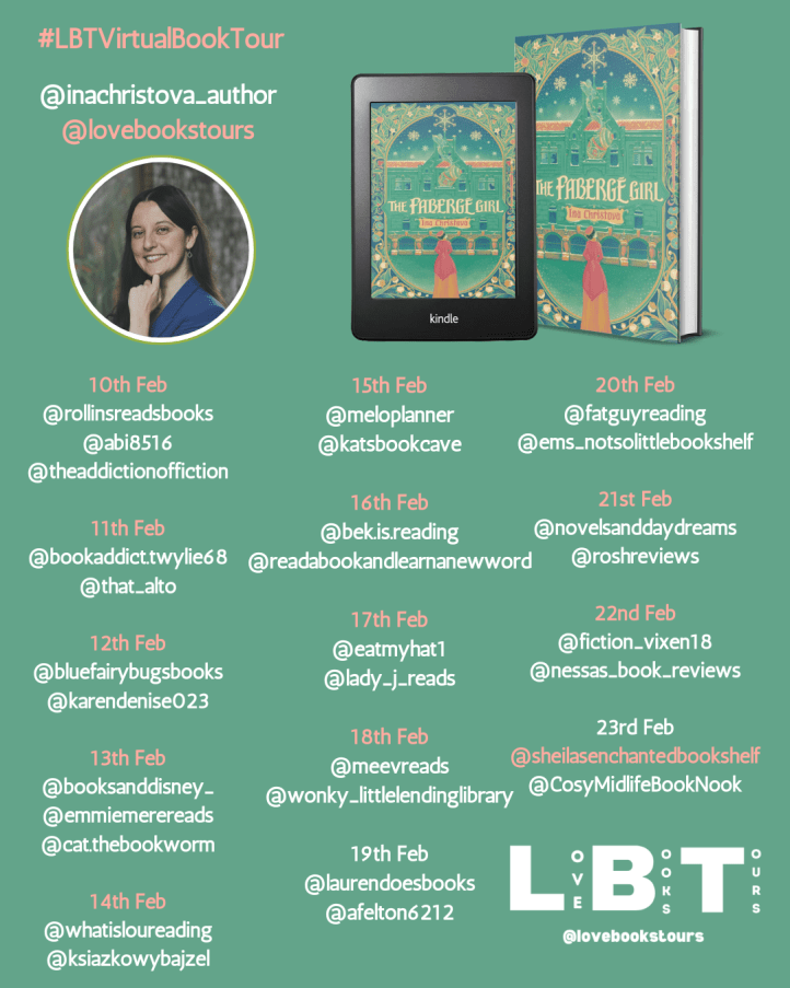 Follow the #Virtualbooktour for The Faberge Girl by Ina Christova | Proudly organised by @LoveBooksTours #BookTour #SupportingAuthors #BookPromotion #BookSky πŸ’™πŸ“š