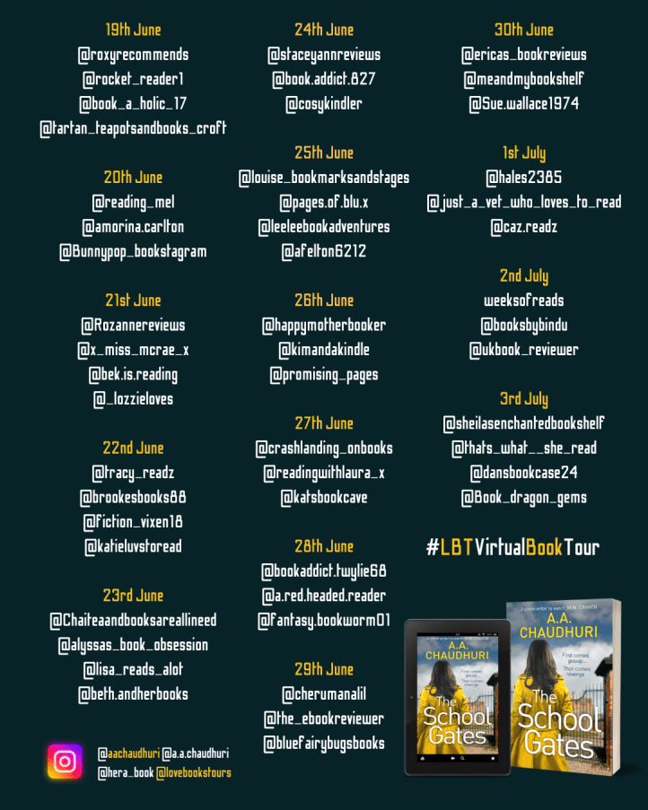 Follow the #Virtualbooktour for The School Gates by A.A. Chaudhuri | Proudly organised by @LoveBooksTours #BookTour #SupportingAuthors #BookPromotion