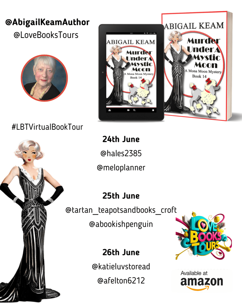 Step back in time with high society sleuth Mona Moon as she finds her long-awaited honeymoon turning into a chilling mystery under Mediterranean skies. Weโre thrilled to be hosting the virtual book tour for Murder Under A Mystic Moon by Abigail Keam โ a captivating entry in the beloved Mona Moon Mystery series!