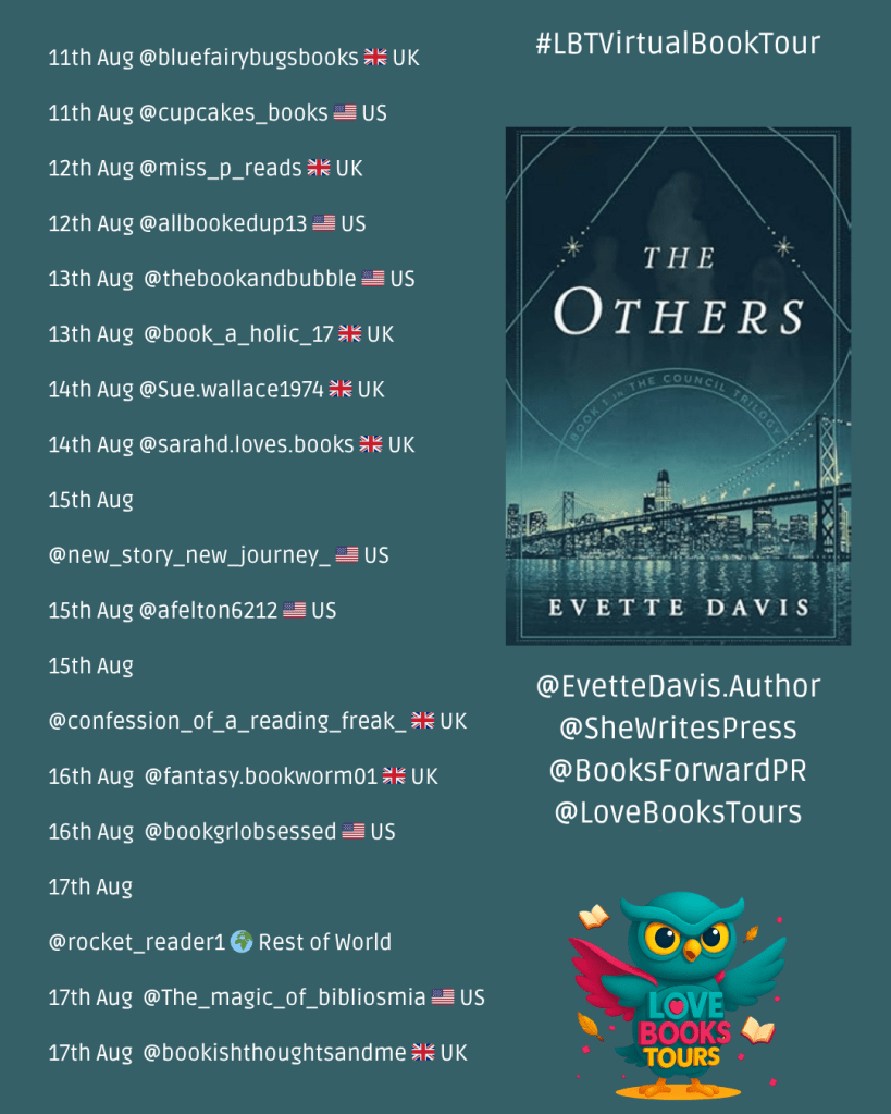 Evette Davis is the author of The Others and The Gift, the first two installments of The Council Trilogy, and of 48 States, which was a Kirkus Reviews Best Indie Book of 2022. She is a member of the board of directors for San Francisco’s Litquake and has twice been honored by the Friends of the San Francisco Public Library as a Library Laureate. Her work has been published in the San Francisco Chronicle and Writer’s Digest and she is a cofounder of BergDavis Public Affairs, an award-winning consulting firm based in San Francisco. Davis splits her time between San Francisco and Sun Valley, Idaho.