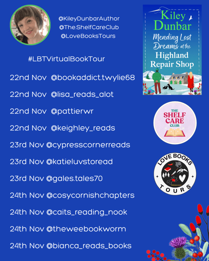 Weβre thrilled to announce the upcoming Bookstagram Tour for Mending Lost Dreams at the Highland Repair Shop by Kiley Dunbar β a heartwarming womenβs fiction novel about second chances, community, and the beauty of mending whatβs been broken. β¨