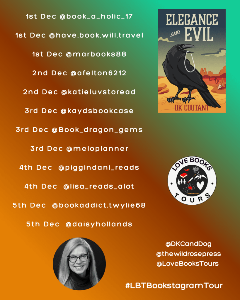Weβre thrilled to be partnering with The Wild Rose Press and author DK Coutant for the Bookstagram tour of Elegance and Evil β the second book in the Cleo Cooper Mystery series.