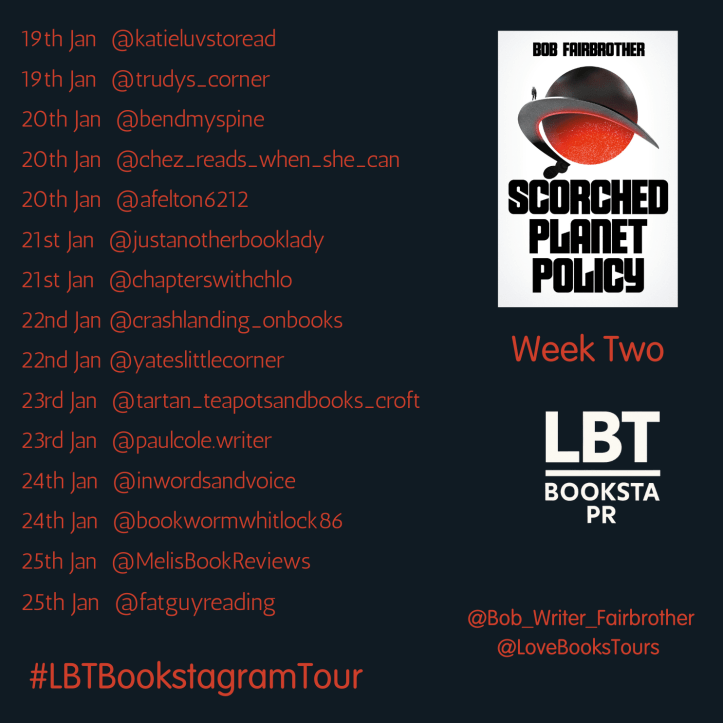 We’re delighted to be welcoming Bob Fairbrother back to Love Books Tours this January with his compelling sci-fi dystopian novel, Scorched Planet Policy.