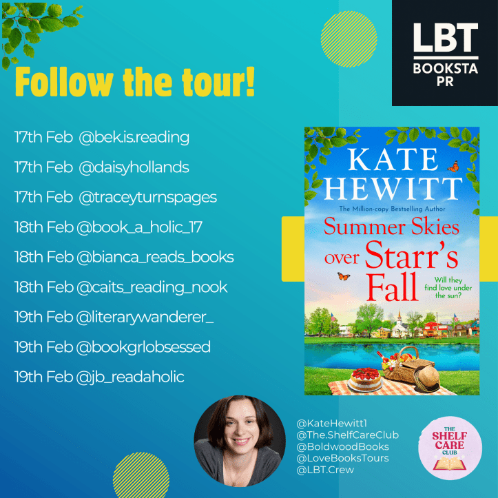 We’re so excited to be kicking off today’s Bookstagram Tour for Summer Skies Over Starr’s Fall by Kate Hewitt, in partnership with Boldwood Books and The Shelfcare Club.