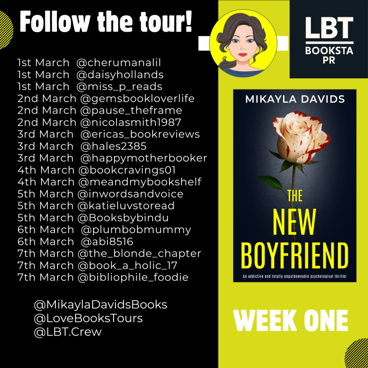 We’re thrilled to be welcoming @MikaylaDavidsBooks back to Love Books Tours with her brand new psychological thriller, The New Boyfriend. If you love twisty, page-turning suspense where nobody is quite who they seem, this tour is going to be right up your street.