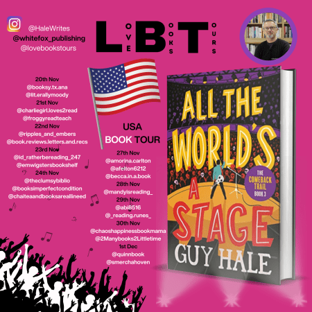🚀 Buckle up for an Unforgettable Ride! 📖🌟 Follow the #VirtualBookTour of ‘All The World’s A Stage’ by Guy Hale (@HaleWrites) – USA TOUR Nov 20 – Dec 1 🇺🇸📚 #CrimeThriller Organised by @lovebookstours – Don’t miss out on this thrilling journey!
