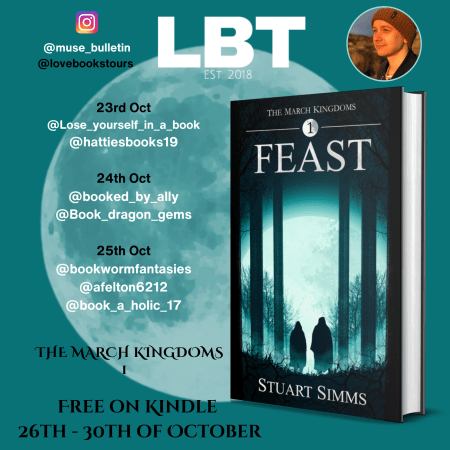 📚 Follow the #virtualbooktour for Feast: The March Kingdoms Book 1 by Stuart Simms | 23rd – 26th October | Organised by @lovebooktours | #Freereviews #Authentichhosts #Readers