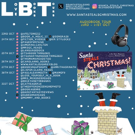 📚 Follow the #audiobooktour for Santa Steals Christmas by Eve Nairn-Magnante illustrated by Nicholas Child @SantaStealsXms 📚 | 23rd – 31st Oct | Organised by @lovebookstours #Inclusivebooks #authenticreviews #readers