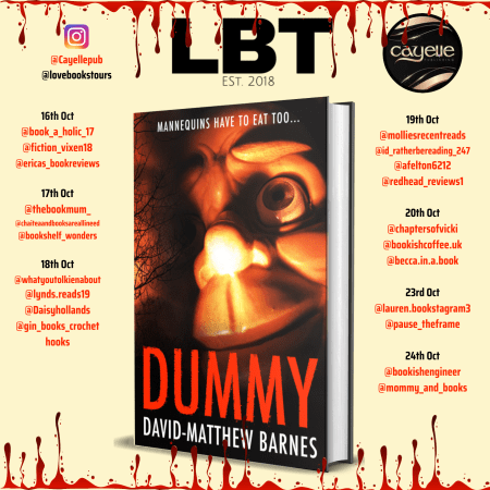 Get Ready to Scream: Follow the Spine-Tingling Virtual Book Tour for ‘Dummy’ by David-Matthew Barnes @CayellePub! Mark Your Calendars: October 16th – 24th Organised by @lovebookstours Prepare for a chilling journey into the unknown!