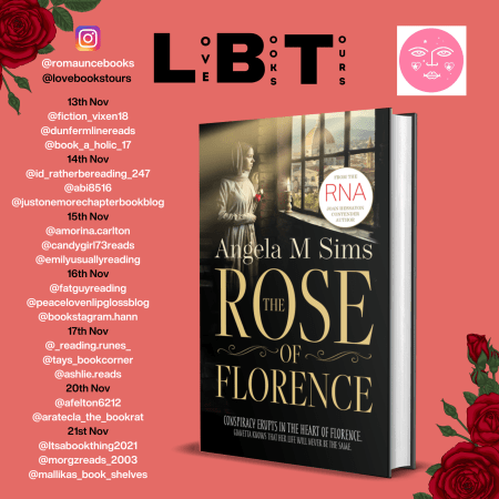 Mark Your Calendars! The Rose of Florence Virtual Book Tour by Angela Sims (@angelamsims1 @romaunce ) Join us from November 13th to 21st for an enchanting journey, organised by @lovebookstours. #BookTour #AngelaSims #RoseOfFlorence