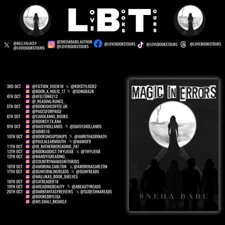 π Get ready for an enchanting journey! π Follow the #VirtualBookTour for Magic in Errors by Sneha Babu, Oct 3-20. π΅οΈββοΈ Mystery unfolds in 114 pages! Discover the magic of interconnected lives β¨π #MustRead #BookLaunch #MagicInErrors
