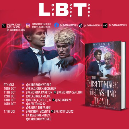 Exciting news! π Follow the #VirtualBookTour for THE MISFIT MAGE AND HIS DASHING DEVIL by @Quirk_Zombie, organised by @lovebookstours! πβ¨9th – 17th October #Fantasy #Paranormal #Queer #LGBTπ§ββοΈπ #BookTour