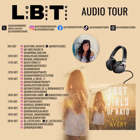 📚 Follow the #virtualbooktour for “Lost Girls of Kato” by Quinn Avery! @naumannbooks Audiobook Tour Oct 9-20. Romantic Suspense Thriller. Dive into a gripping story of love, mystery, and friendship that transcends time.