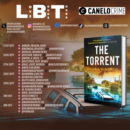Torrent by Dinuka McKenzie @canelocrime @DinukaMckenzie #blogtour organised by @lovebookstours @KellyAlacey #Booktwitter #Bookreviews #VirtualBookTour #2023tour