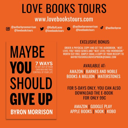 EXCLUSIVE BONUS – Maybe You Should Give Up: 7 Ways to Get Out of Your Own Way and Take Control of Your Life by Byron Morrison @lovebookstours @kellyalacey #Booknews #BookTwitter #Readers #Bookbloggers #LBTCrew