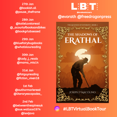 Follow the #Virtualbooktour for The Shadows of Erathal (The Legends of Evorath #1) by Joseph P Macolino| Proudly organised by @LoveBooksTours #BookTour #SupportingAuthors #BookPromotion #BookSky 💙📚