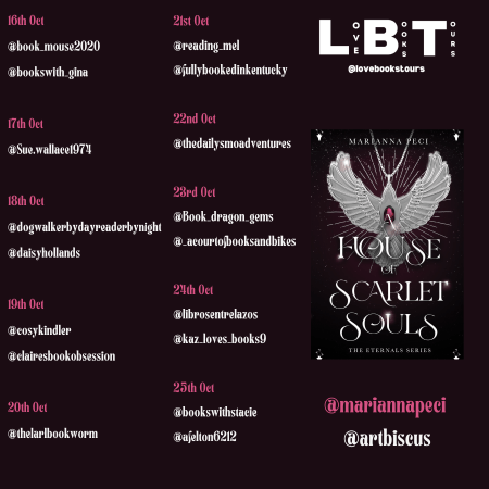 Follow the #Virtualbooktour for A House of Scarlet Souls by Marianna Peci| Proudly organised by @LoveBooksTours #BookTour #SupportingAuthors #BookPromotion