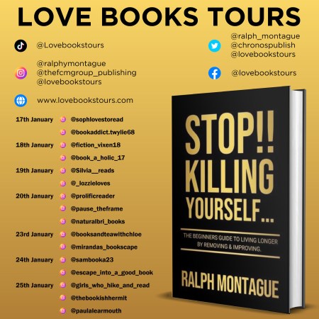 Starting in January the Stop!! Killing Yourself … The Beginners Guide to Living Longer by Ralph Montague @ralph_montague @chronospublish @FCMTaryn #blogtour organised by @lovebookstours @KellyAlacey #BookTwitter