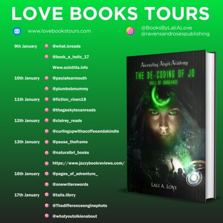 The De-Coding of Jo: Hall of Ignorance (Book I) by LALI A. LOVE @laliaristo @ravensnrosespub @lovebookstours @kellyalacey #blogtour #booktwitter #bookreviews #darkfantasy #ya #scifi