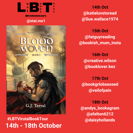 Follow the #Virtualbooktour for Bloodwoven by G J Terral | Proudly organised by @LoveBooksTours #BookTour #SupportingAuthors #BookPromotion