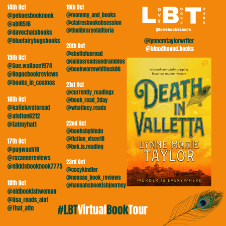 Follow the #Virtualbooktour for Death in Valletta by Lynne Marie Taylor @LynneTaylor_1 @bloodhoundbook | Proudly organised by @LoveBooksTours #BookTour #SupportingAuthors #BookPromotion